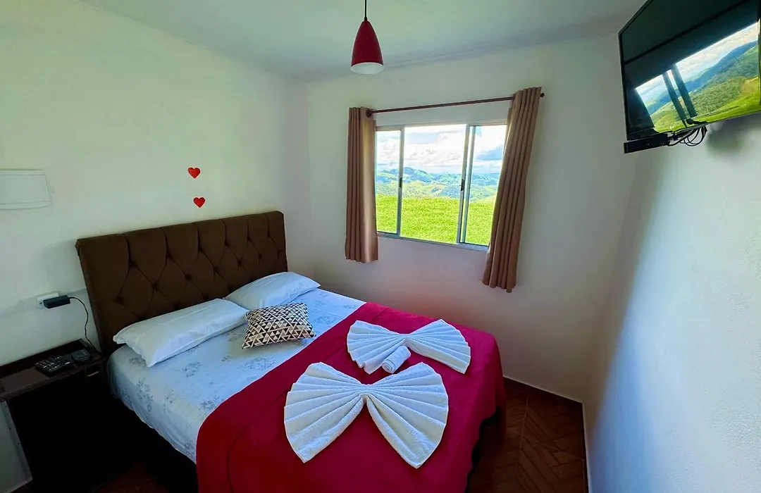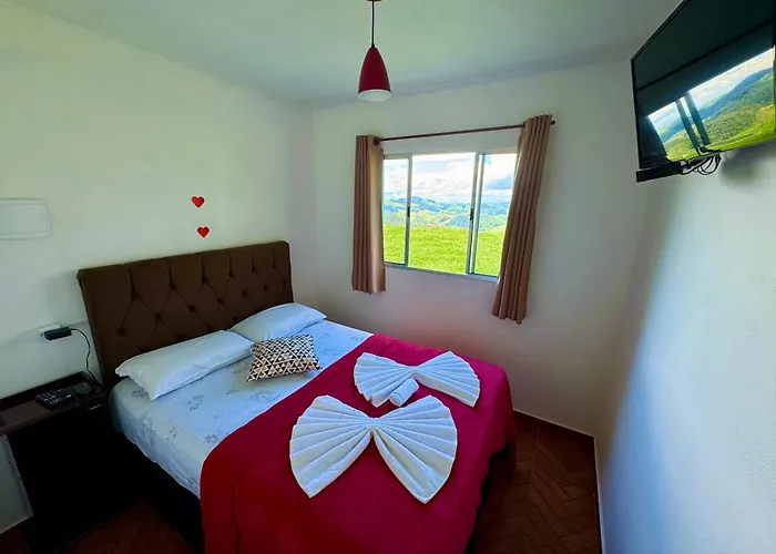 Situated about a 10-minute ride from Pedra De Sao Domingos, the 1-bedroom Chalé Mirante da Colina1 com hidro privativa e café da manhã includes an outdoor swimming pool, as well as a hot tub to relax in.